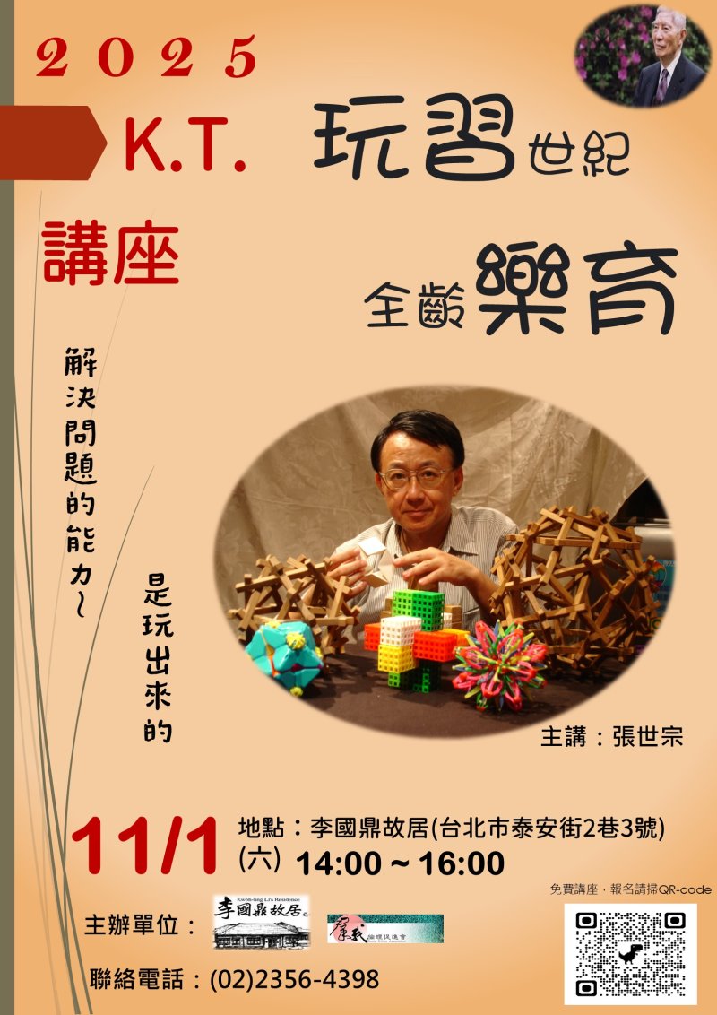 KT紀念講座_張世宗-11/1(六)-玩習世紀,全齡樂育-創意遊藝體驗~