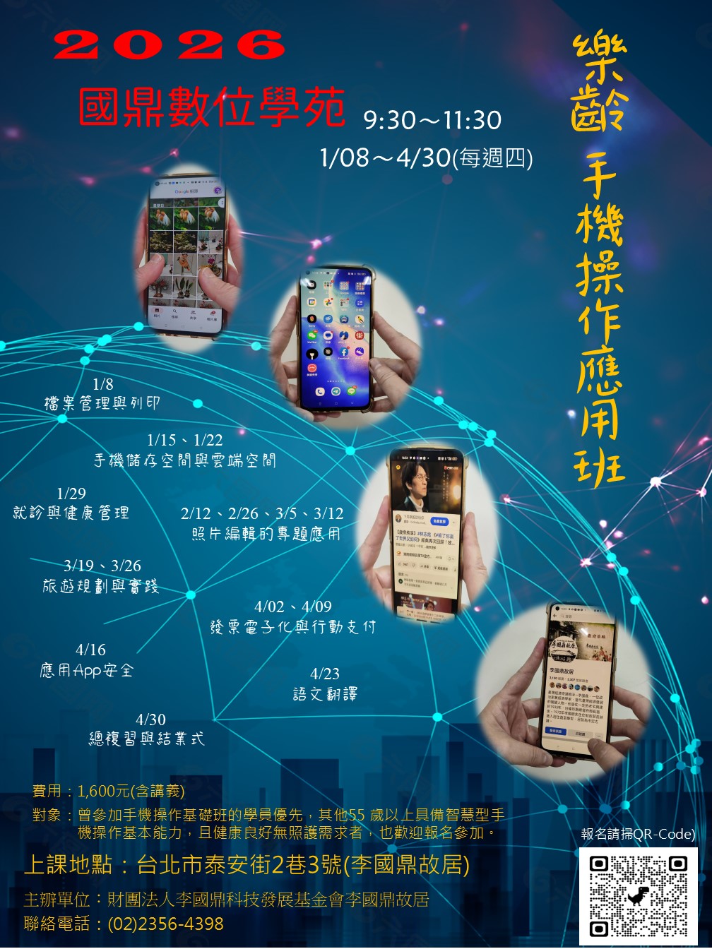 名稱:2026國鼎數位學苑「樂齡手機操作應用班」研習班招生